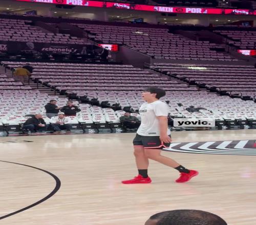 万众期待!杨瀚森身穿中国红战靴迎接常规赛首秀赛前投篮热身